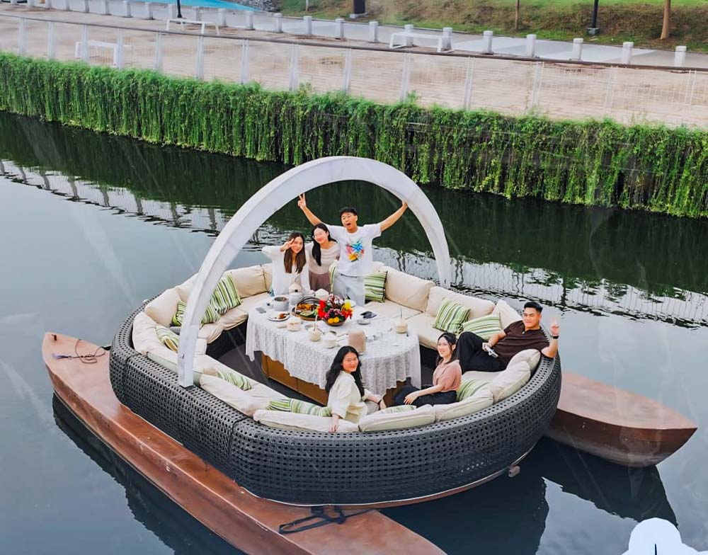 Nah, yang mau naik Catamaran sambil ngeteh atau makan, naiknya dari sini nih. Ada paket Breakfast River Ride, Morning & Sunset High Tea, Sunset Dine In, mulai Rp175.000 per orang. Harus reservasi terlebih dulu ya. Ada juga yang Walk In, tentu tanpa sajian, hanya susur sungai dengan Catamaran mulai Rp550.000 per boat. Disediakan juga penyewaan Swanboat, Paddleboard, Bumperboat, Classic Car, Electric Car.