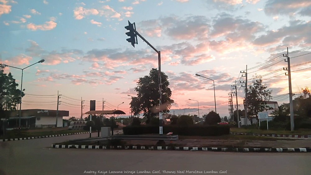 Kota Chiang Khong merupakan kota terakhir Thailand sebelum memasuki kota perbatasan Huay Xai, Laos. Perjalanan memakan waktu kurang lebih 2,5 jam. Jalanan sangat mulus, tidak ada yang rusak. Sempat berhenti sejenak di rest area untuk ke toilet dan mobil mengisi bensin sambil kami sejenak menikmati sunrise.