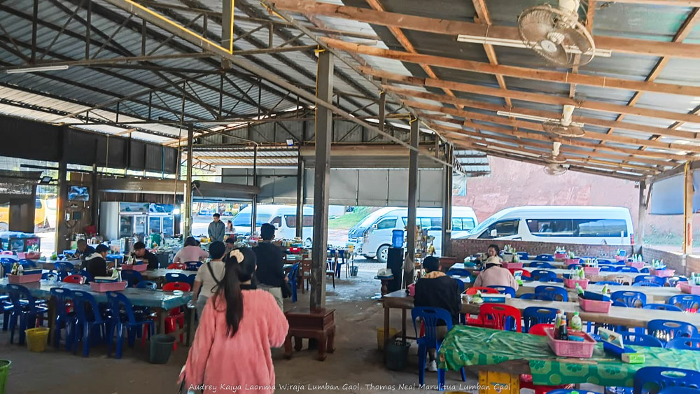 Suasana rest area di Laos menuju stasiun kereta. Terdapat toilet jongkok sederhana tapi bersih berupa bangunan kayu terpisah