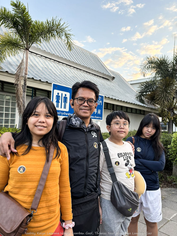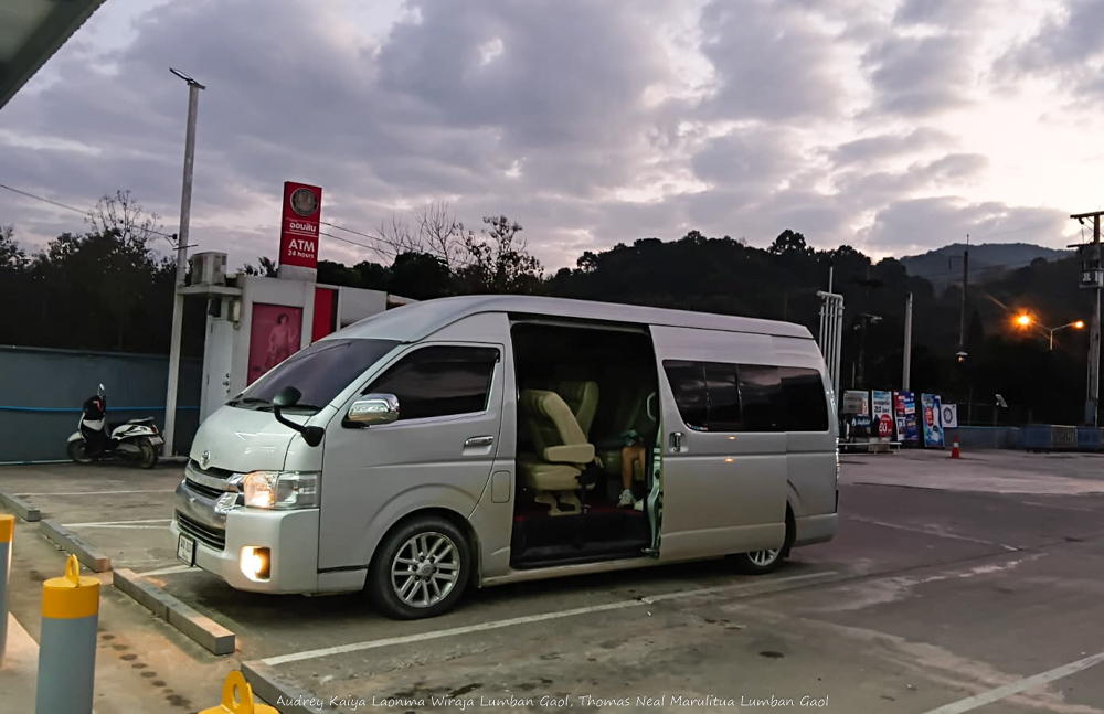 Kami sekeluarga dengan 3 anak memulai perjalanan panjang dengan dijemput mobil van di hotel kami di Chiang Rai tepat jam 5 pagi. Sesudah itu mobil berkeliling kota untuk menjemput penumpang lain. Perjalanan menuju kota perbatasan Chiang Khong pun dimulai. Langit masih gelap dan semua penumpang melanjutkan mimpinya yang tertunda.