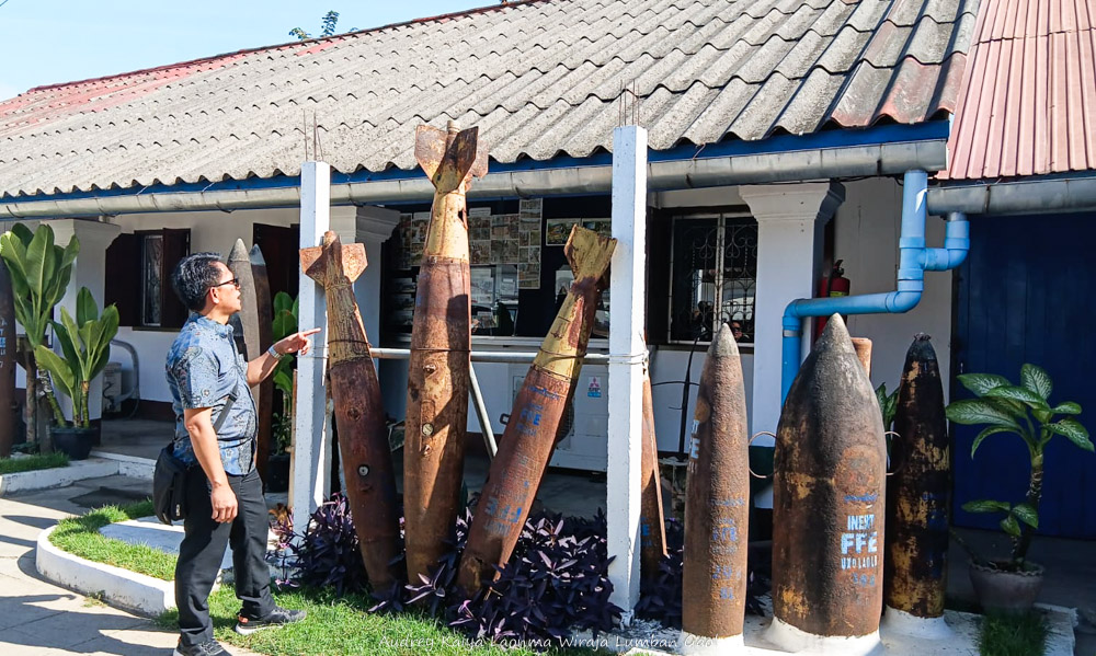 Kami mengunjungi UXO Lao Visitor Centre di hari Natal 2025 karena diajak supir kami Mr. Chanthy yang salah satu anggota keluarganya terkena UXO. Mr. Chanthy ingin membukakan mata kami tentang bahaya UXO. UXO Lao Visitor Centre tidak besar dan tidak banyak turis yang datang. Suasana mengerikan tidak tampak di dalam visitor centre, malah pengunjung diajak melihat karya seni ukir selongsong bom karya Buopaul Photizan yang berjudul “Stories from Pleateu”. Terdapat 3 selongsong bom yang besar berisi 3 kisah sedih korban UXO.